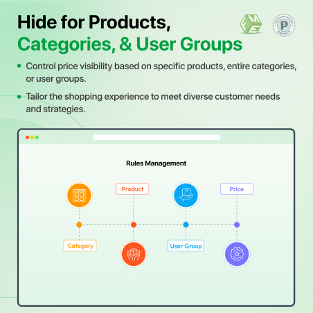 Você pode ocultar o preço, adicionar aos botões do carrinho e colocar texto personalizado que pedirá aos clientes que tomem qualquer ação desejada. Este módulo de ocultação de preços do PrestaShop integra o editor WYSIWYG, que permite adicionar HTML, inserir vídeos e imagens, links e texto de formato de acordo com suas necessidades. Este módulo ajuda você a transmitir uma mensagem especial aos seus clientes sobre os produtos e que eles devem entrar em contato com você para saber mais informações.