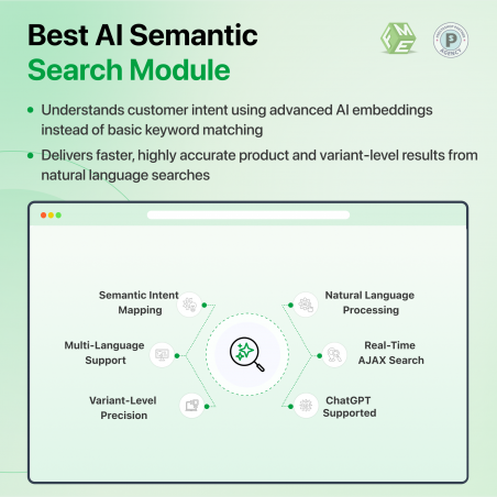AI Semantic Search Pro nutzt vektorbasierte Intelligenz, um die Suchintention Ihrer Kunden zu interpretieren. Dies ermöglicht Suchanfragen in natürlicher Sprache und die Suche nach Varianten für ein reibungsloses Einkaufserlebnis auf PrestaShop.