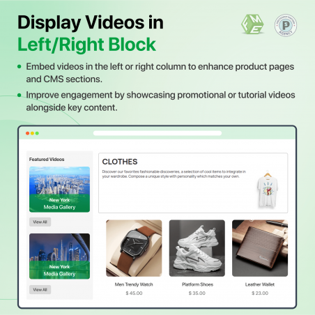 Media Gallery ist ein Top-Prestashop Media Gallery-Modul , mit dem Sie perfekte Video-Streaming-Websites oder eine Videogalerie auf Ihrer Website erstellen können. Erstellen Sie Online-Videoalben; Kategorisieren Sie sie für die Benutzerfreundlichkeit und das alles mit extremem Komfort. Jede Kategorie kann ihre eigenen Meta-Informationen für Suchmaschinen haben. Benutzer können Videos manuell von ihrem PC hochladen, um eine Videogalerie zu erstellen, oder sie können sie von Youtube, Vimeo oder einer beliebigen URL einbetten.