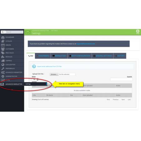 Mit dem Newsletter-Addon für PrestaShop können Sie eine ganze Liste von E-Mail-Adressen für E-Mail-Marketing aus einer CSV-Datei importieren.