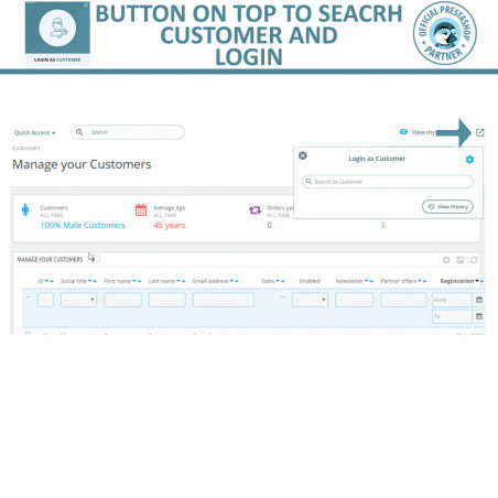 This Prestashop Log in as Customer module enables merchants to extend very effective sales support. If a customer is facing any problem in the checkout process, admin can login and resolve the problem then and there for the customer. You can also follow the complete shopping process as a customer and make necessary changes to make it as user-friendly and as smooth as possible.