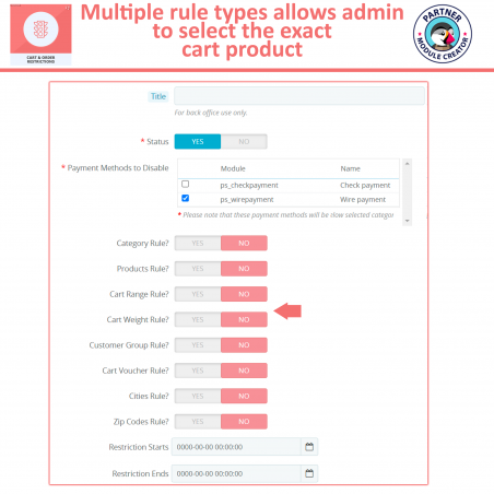 Vous pouvez visiter notre Prestashop Cart & Order Restriction module sur PrestaShop Official Marketplace en cliquant ici.