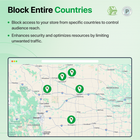 Le module PrestaShop GEO IP Ban de FME vérifie l’adresse IP du trafic entrant sur le site Web et autorise ou bloque l’accès des visiteurs à votre site Web tel que défini dans les listes de contrôle d’accès. Vous pouvez bloquer les adresses IP ou les pays en utilisant ce module IP bloc. Empêchez votre site Web de recevoir des spams, des robots et d'autres attaques de sécurité. Voir Démo pour en savoir plus sur les avantages.