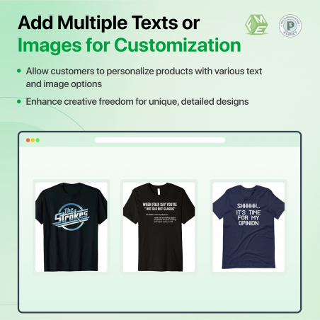 • UneLes administrateurs peuvent attribuer des coûts spécifiques à chaque option de personnalisation dans le module de personnalisation des produits PrestaShop, ajoutant ainsi de la valeur et de la transparence pour les clients. Avec des frais distincts pour les images, les balises, le texte et les nombres, cette fonctionnalité permet une tarification plus précise qui reflète la complexité de chaque conception, impactant directement la croissance des revenus tout en offrant aux clients une visibilité claire des coûts.
