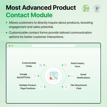 Formulaire de contact Le module PrestaShop s’avère un outil utile pour garder vos clients engagés et permettre de faire des demandes sur place sur les produits. Ils peuvent poser une question directement à partir de la page du produit. Le commerçant peut répondre à ces questions et les publier en tant que FAQ sur la page du produit.