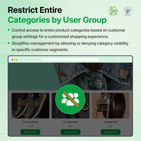Restriction par groupes de clients permet à l'administrateur de restreindre l'accès aux produits, catégories et pages CMS en fonction des groupes d'utilisateurs. L'administrateur peut effectivement créer une zone privée pour chaque groupe d'utilisateurs où ils ne verront que les pages, et les produits associés à leur groupe seulement.