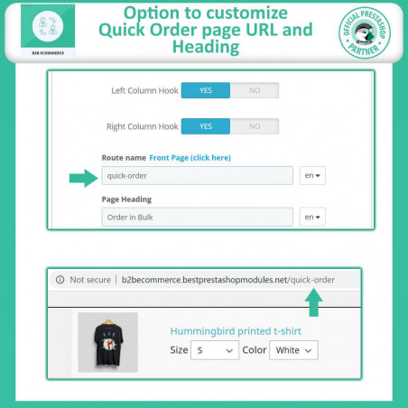 Le restrizioni del gruppo di clienti consentono all'amministratore di gestire l'accesso e i prezzi, favorendo la fedeltà tra specifici segmenti di acquirenti. Inoltre, le restrizioni sui metodi di pagamento garantiscono transazioni sicure, riducendo al minimo il rischio di frode, mentre la tabella degli ordini rapidi semplifica gli acquisti in blocco, portando a volumi di ordini più elevati. Insieme, questi moduli creano una soluzione completa per un efficace commercio PrestaShop B2B.