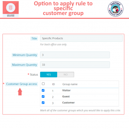 Puoi visitare il nostro Prestashop Cart & Order Restriction module sul mercato ufficiale di PrestaShop facendo clic qui.