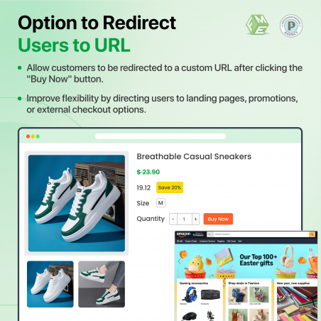 Il modulo Prestashop Acquisto Rapido Ora aggiunge un nuovo pulsante 'compra ora' sulla tua pagina del prodotto da dove puoi reindirizzare gli utenti direttamente alla pagina di checkout. Opzione per reindirizzare gli utenti a link esterni. Mostra il pulsante su un prodotto o categoria con accesso di gruppo utenti.